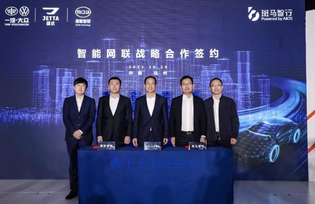 根据公开信息, 2020年9月17日,在2020杭州云栖大会上,斑马智行和一汽大众在线签署战略合作协议。2021年10月20日,在 2021云栖大会上,斑马智行与一汽大众捷达品牌、摩斯智联举行智能网联战略合作签约仪式。
